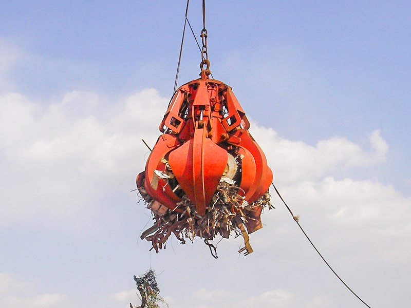 主要用于抓取廢鋼、垃圾、塊礦(石)等不規(guī)則大粒度散貨物料的裝卸,適用于集裝箱岸橋、單索格林吊機(jī)及其它各型起重機(jī),可大大提高起重機(jī)的綜合工作效率。